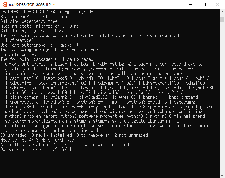 해당 최신 package list 를 바탕으로 apt-get upgrade를 하면 최신 상태의 Ubuntu 를 유지할 수 있다.
