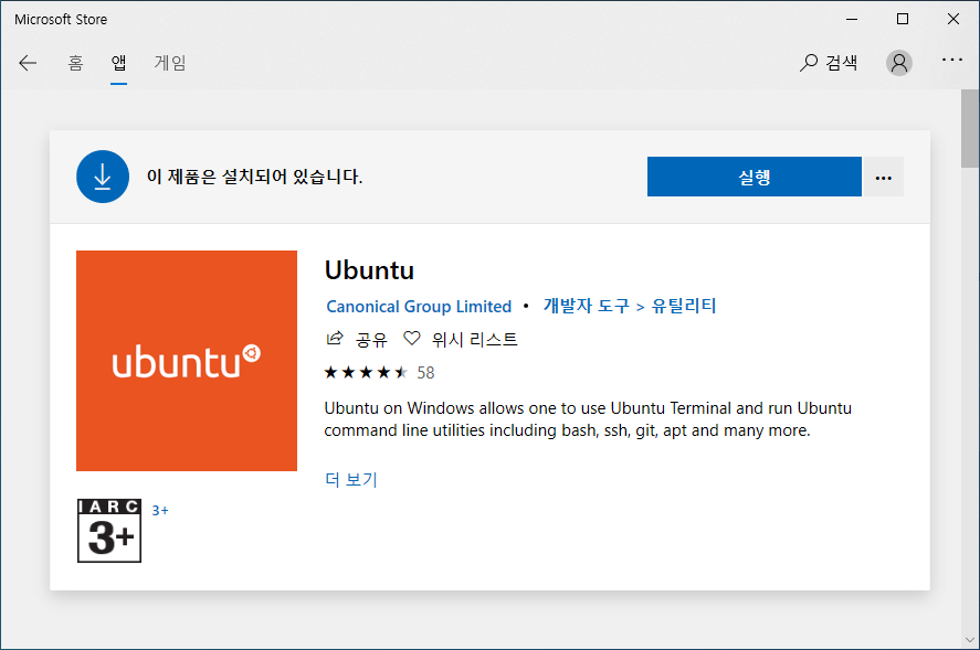 Microsoft Store 에서 검색 기능을 사용하여 "Linux"를 검색하면 아래와 같이 다양한 배포판들이 등록된 것을 확인할 수 있다. 개인적으로 가장 익숙한 Ubuntu 를 선택하였다.