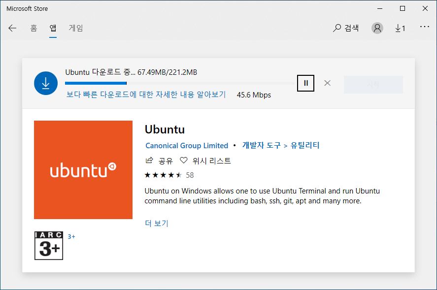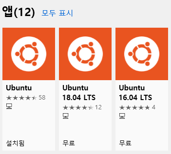 Microsoft Store에서 Ubuntu 선택할 때 명확한 Ubuntu 버전이 기입되어 있지 않아 어떤 버전이 설치될지 몰랐는데, 18.04 가 설치되었다. 만약 설치를 원하는 Ubuntu 버전이 있다면 Microsoft Store 에서 검색시 버전명까지 입력하면 아래와 같이 확인이 가능하다.