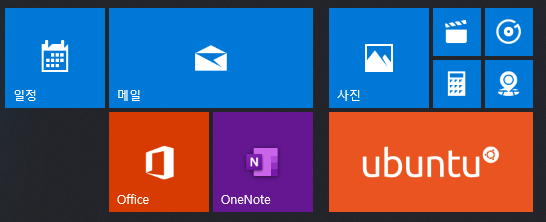 설치가 완료되면 시작 메뉴에서 Ubuntu 가 보이고 Tile 로 추가가 가능해 진다.