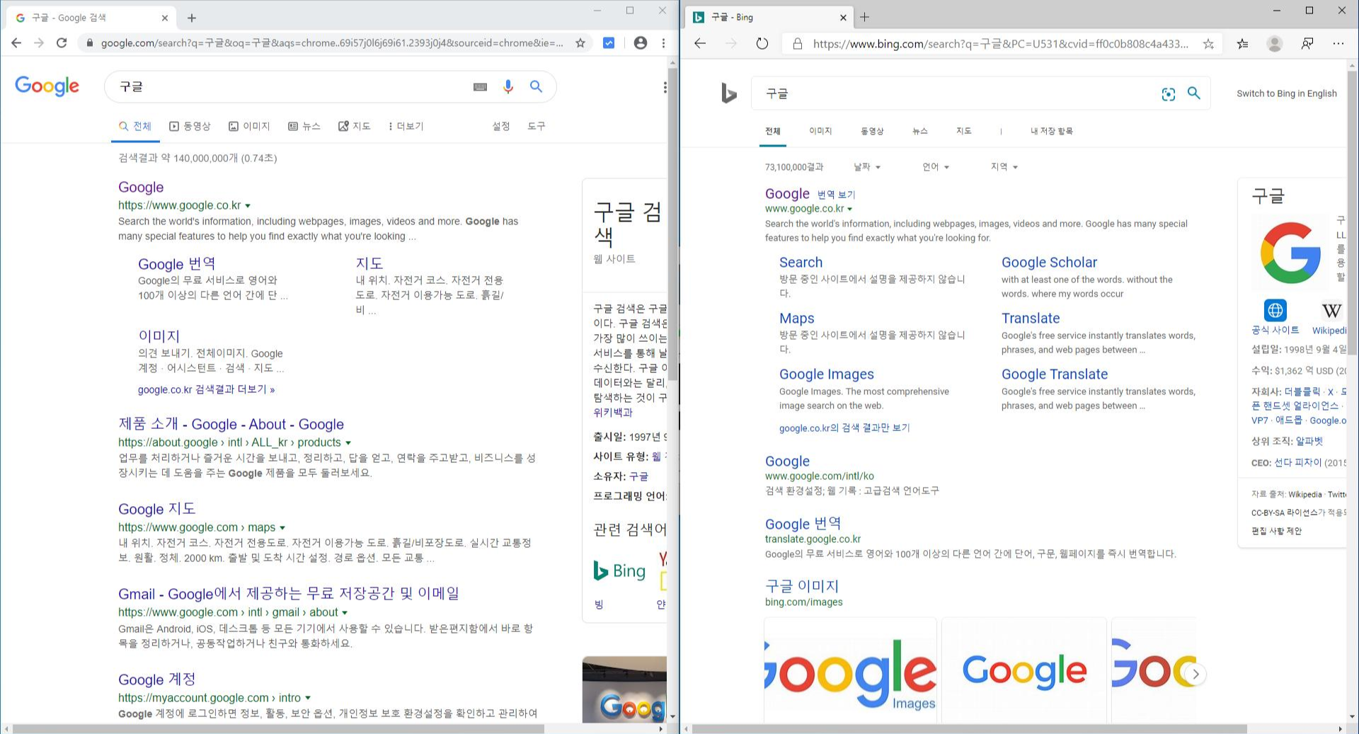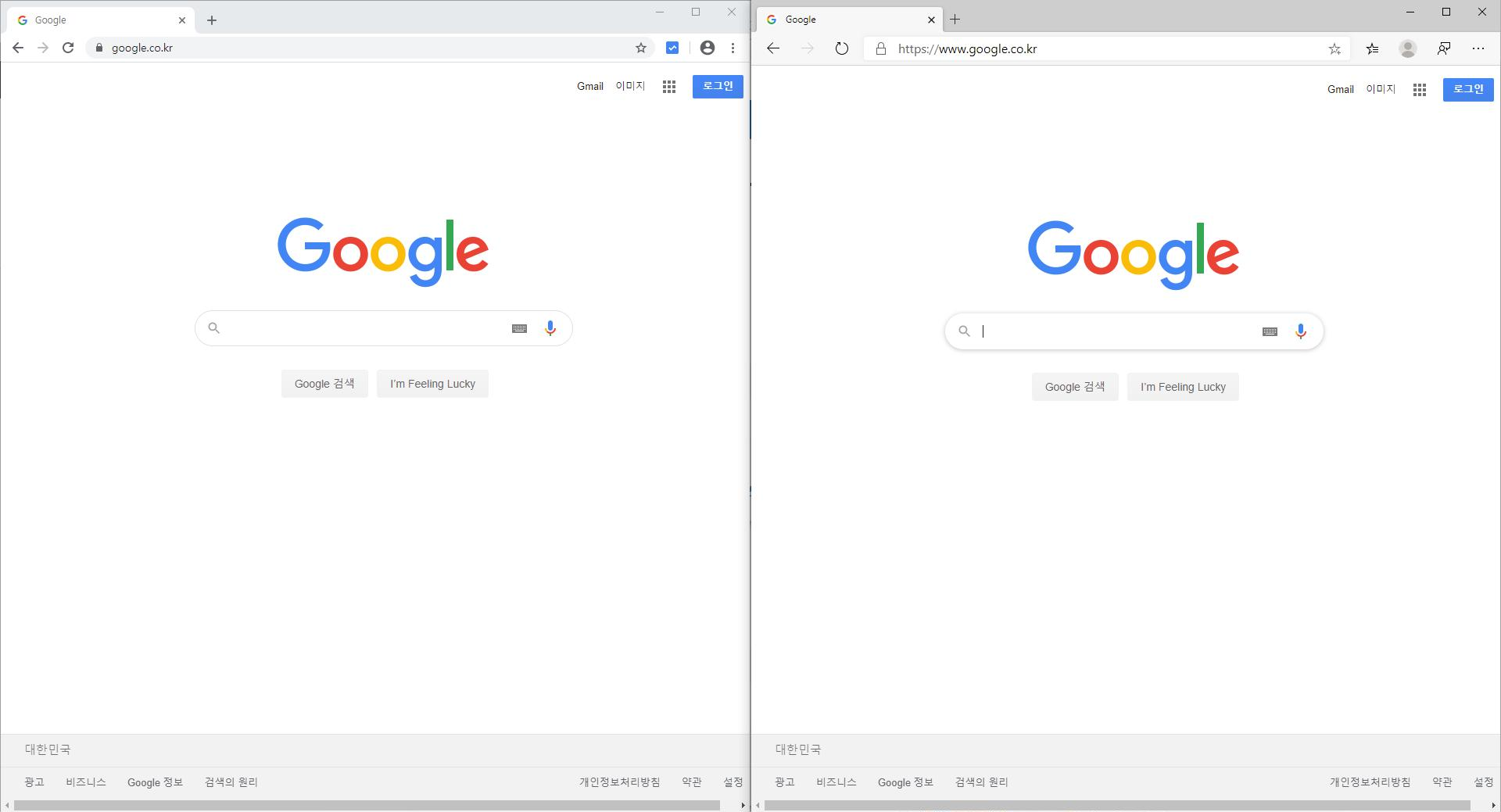 Google Chrome 과의 비교하면 다음과 같다. (좌 : Chrome, 우 : Edge)