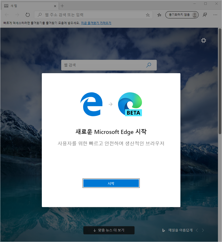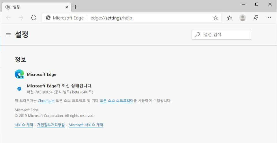 어느 정도 안정성이 확보되어 있는 Edge Beta 를 선택해 설치하면 다음과 같은 화면을 볼 수 있다.