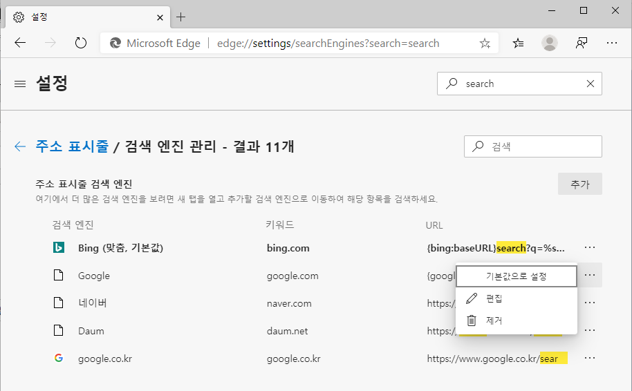 기본 검색 엔진의 변경