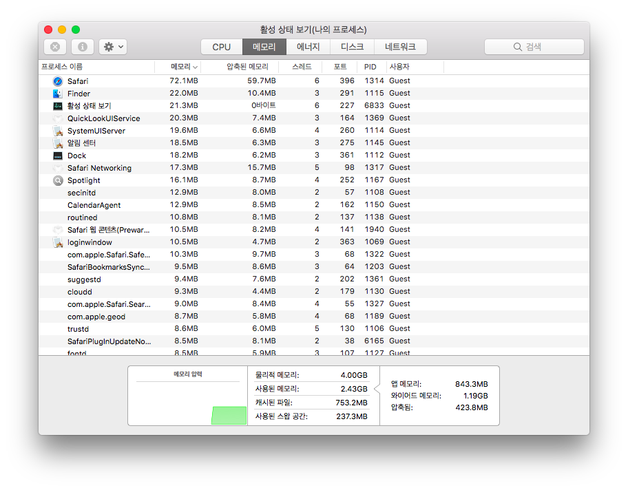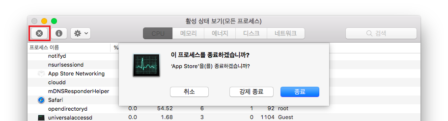 Windows 에는 "작업 관리자""가 있다면 MacOS 에는 "활성 상태 보기" (Activity Monitor) 가 있다.
