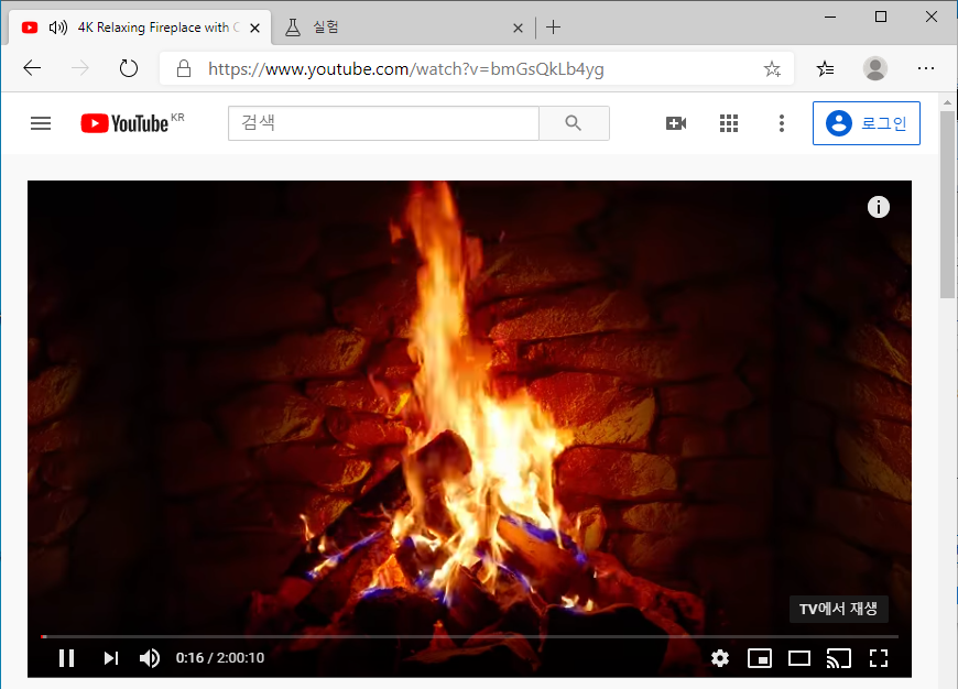 아래와 같이 Chromium Edge 를 통해 Youtube 를 볼 경우 Chrome 에서는 보이는 "TV에서 재생" 아이콘이 보이지 않는다.