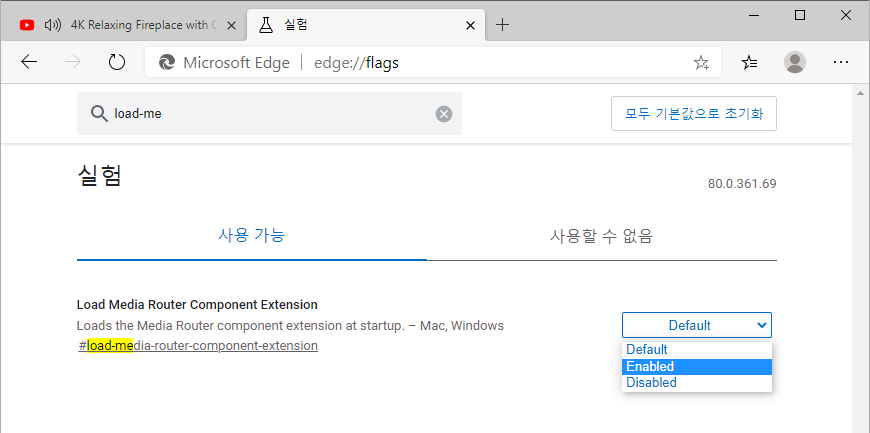 3) 결과로 나온 "Load Media Router Component Extension" 에서 "Enabled" 선택