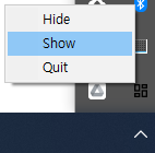 Window UI 에서 오른쪽 위 X 버튼을 누르면 창이 사라지고 tray 의 Show 메뉴를 누르면 다시 나타나는 기능을 구현하고자 한다.